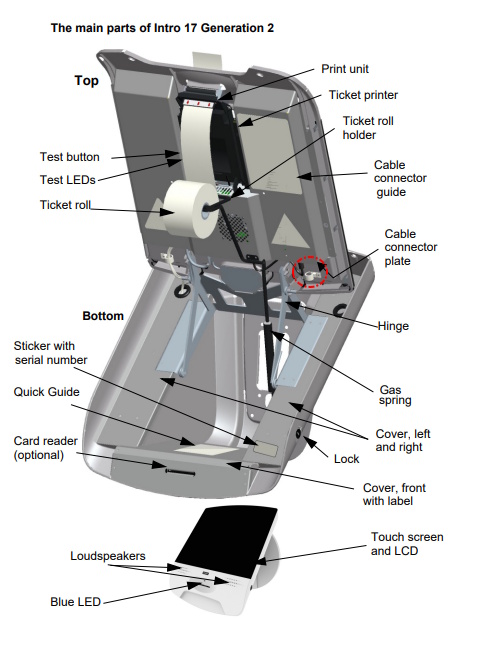 Gångjärn förbinder den övre och undre delen, vilket möjliggör att Intro17 kan öppnas och stängas. Rörelsen dämpas av en gasfjäder.